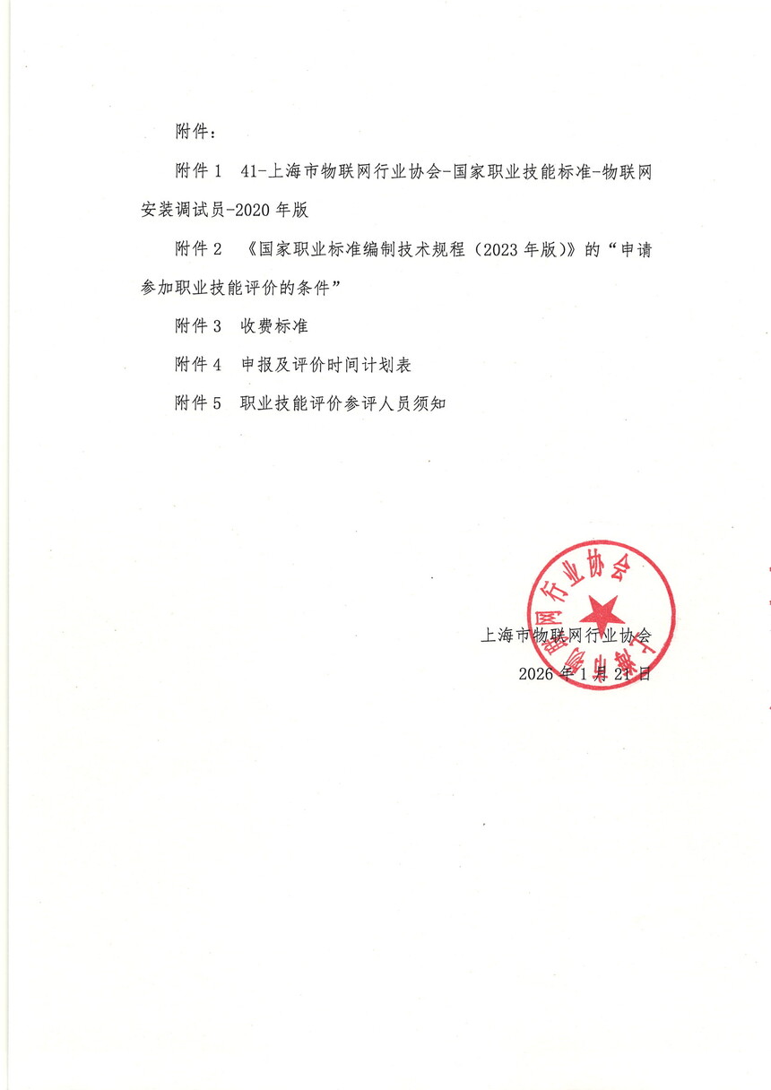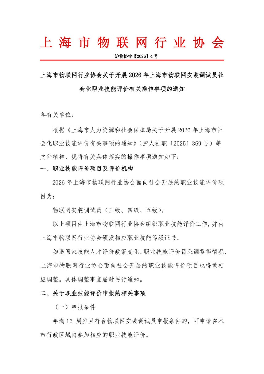 《上海市物联网行业协会关于开展 2026 年上海市物联网安装调试员社会化职业技能评价有关操作事项的通知》.PDF